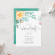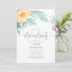Mint, pink and yellow exotic floral retirement party invitations featuring peonies, eucalyptus, rosehips, succulent, lisianthus, menthol leaves and succulents