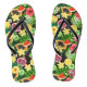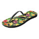 Tropical mix-fruit, flowers and leaves on black flip flops