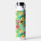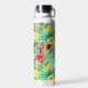 Tropical mix-fruit, flowers and leaves on blue water bottle