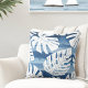 Tropical Modern Blue White Palm Leaves Throw Pillow