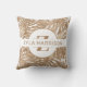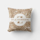 Tropical Monogram Boho Brown White Palm Leaves Throw Pillow