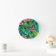 Tropical Monstera Heliconia Jungle Pattern Round Clock
