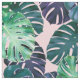 Colorful watercolor tropical tracery monstera leaves on a light pink background.
