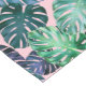 Colorful watercolor tropical tracery monstera leaves on a pastel pink background.