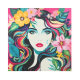 This abstract vibrant striking design captures the essence of a tropical goddess, blending bold floral elements with vivid, colorful waves of hair. The mesmerizing gaze and rich, saturated colors create a dreamy, lively composition that emits warmth and energy. Perfect for lovers of vibrant pop art and botanical beauty.