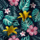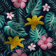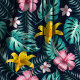 Tropical Navy And Pink Hibiscus Flowers Floral Fabric