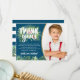 Tropical Navy Blue Flamingo Birthday Photo Thank You Card