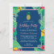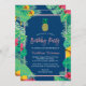 Tropical Navy Blue Gold Pineapple Birthday Party Invitation