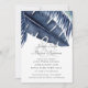 Tropical Navy Blue Leaves Wedding Couples Invites