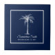 Tropical Navy Blue White Palm Tree Personalized Ceramic Tile