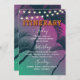 Tropical Night timeline itinerary with tropical design, string lights, palm trees and green & purple sky background.