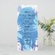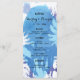 Loving these summer nights? Modern and fresh design has coconut trees over a watercolor blue and purple background reminiscent of those cool night skies as the sun has already set. This tropical themed wedding menu cards are totally rad travel, outdoor, or destination weddings.