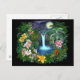 #Tropical #Nights #Postcard showing a waterfall under a full moon, framed by tropical flowers