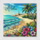 Aloha! Pretty tropical coastal shoreline. Pretty blue water, palm trees, tropical flowers and a lighthouse in the background. Ai art done in a comic book pop art style.