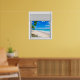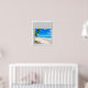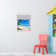 Beautiful tropical ocean view, fake window scene, for a windowless bathroom or office wall. Fun, realistic optical illusion scenic poster for an office or study wall.