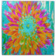 This Original Digital Oil Painting by My Rubio Garden features an Orange and Hot Pink Decorative Dahlia Flower with Teal Blue, Magenta, Turquoise, Lime Green, Chartreuse and Aquamarine Accents. The result is a Colorful, Abstract, Stunning Dahlia Floral painting that you will love!