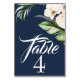 Tropical Orchids and Palm on Navy Blue Table Number