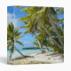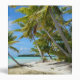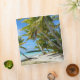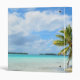 Ring binder with a tropical image of a hanging palm tree on a white sand beach and a blue lagoon on an island in the pacific archipelago French Polynesia upside down to place the trees on the front. Excellent to use as a photo album for instance after a tropical vacation.