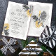 Plain white envelopes are included with paper invitations and will come to fit the invitation size you select. If you don’t need the envelopes, you may choose to not receive them by selecting the dropdown below "Envelopes" and choosing "None." If you’d like to have a design on your envelopes, you can browse all of these available envelopes to find the design that complements your Tropical Palm Black White Gold 80th Birthday Invitation.