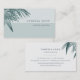 Chic tropical business cards feature a colorblock stripe background in icy grayed aqua with a cluster of jasper green palm tree leaves blooming from the corner. Personalize with your name and business name, title or occupation. Add your full contact details to the back in a chic mix of modern sans serif and italic lettering, adorned with a smaller palm frond on the upper right. A unique choice for travel agents, vacation property managers, or any business in a tropical or island setting.