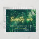 Tropical palm green neon script 21st birthday postcard