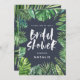 Modern watercolor foliage tropical palm leaf bridal shower invitation. Hand painted script text. Part of a on trend summer collection. Background color can be changed.