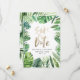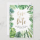 Modern tropical palm leaf watercolor foliage save the date cards. Hand painted gold effect script text. Part of a on trend summer collection. Background color can be changed.