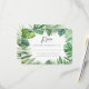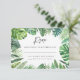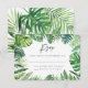 Modern tropical palm leaf watercolor foliage rsvp reply card. script text. Part of a on trend summer collection. Background color can be changed.