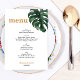 Elevate your wedding dining experience with our awesome wedding menu cards adorned with graceful tropical exotic leaf. Designed to complement your elegant affair, these menu cards add a touch of natural beauty and sophistication to your reception tables.