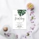 Set the tone for your tropical wedding with this elegant Monstera-inspired invitation. Featuring lush green palm leaves and Monstera foliage, this design evokes a serene island vibe, perfect for destination or summer weddings. The clean typography and natural green palette make it both modern and refreshing. Ideal for couples seeking a chic and stylish way to invite guests to their big day.
