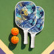 Have fun playing pickleball with this super fun paddle featuring a tropical palm tree leaf pattern. Add your name, phone number or custom text to the bottom edge so you'll never lose your paddle again!! Whether you're heading out for rec or competitive play, this unique, one of a kind custom paddle will definitely become your favorite - and you're sure to get compliments. A perfect gift for beginners and experienced players alike - get two and match with your pickleball partner!!