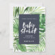 Modern tropical palm leaf watercolor foliage baby shower invitations. Hand painted effect script text. Part of a on trend summer collection. Background color can be changed.