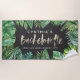 Modern tropical palm leaf watercolor foliage gold effect bachelorette party beach towel. Hand painted effect script text. Part of a on trend summer collection. Background color can be changed.