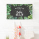 even though you can't be in the same room you can still have a fun baby shower! Modern tropical palm leaf watercolor foliage baby shower party decor. Hand painted effect script text. Part of a on trend summer collection. Background and text color can be changed. Drive by text is editable so can be changed to virtual, from afar or any other wording you prefer.