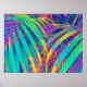 Tropical palm leaf texture background. Palm leaf illustration. Botanical ornament. Exotic leaf top view. Neon leaf background. Psychedelic tropical garden