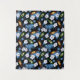 Cool beer bar and man cave wall tapestry printed with beer bottles over blue and white tropical plam leaves on black