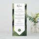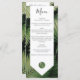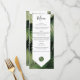 This design features tropical palm leaves as a backdrop to a modern style element. The beautiful greenery of the palms leaves compliment the elegant white modern structure in the foreground. Personalized initials using script typography create a perfect fusion of modern and chic. Lush greenery design ideal for a tropical beach destination wedding. Unique wedding menu card design with modern elements. Matching wedding invitations and other stationery items are also available.