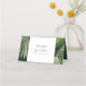 This design features tropical palm leaves as a backdrop to a modern style element. The beautiful greenery of the palms leaves compliment the elegant white modern structure in the foreground. The reverse of the place card showcases the bride and grooms names and wedding date. Personalized initials using script typography create a perfect fusion of modern and chic. Lush greenery design ideal for a tropical beach destination wedding. Unique wedding place card design with modern elements. Matching wedding invitations and other stationery items are also available. Easy to personalize with your details. Hand write your guest names and table number in the space provided.