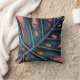 Tropical palm leaves monstera blue pink throw pillow