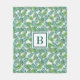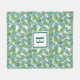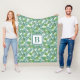 Monogram personalized fleece blanket featuring a botanical green exotic tropical palm tree leaves pttern and personalized monogram in the center.