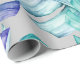 Watercolor jungle leaf gift wrap in accents of green, blue and purple.