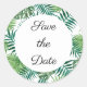 Watercolor Tropical Palm Leaves Save the Date Classic Round Sticker