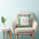 Tropical Palm Leaves | Pink Monogram Throw Pillow