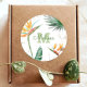 Feel and share tropical vibes any time you use this beautiful, chic, simple, modern, custom name sticker. Stunning, sophisticated, colorful, tropical watercolor birds of paradise flowers, faux gold glitter, and personalized calligraphy script with a bold monogram initial, overlay a chic, airy white background. Personalize with your first name, family name, or message + monogram. Choose from various shapes and sizes. Proudly use this on envelopes, goody bags, and whatever else you want to personalize! Makes a stylish statement every time you use it.