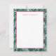 Personalized flat vertical note card features a custom first name in modern pink text, framed with a border of lush green palm and monstera leaf pattern of layered fronds with a clean white background. A light pink background dresses up the back of the card. A stylish botanical stationery design for summertime.