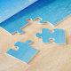 Game puzzle is shown with a photo print of a beautiful tropical beach.