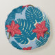 Tropical Palm seamless leaf blue pattern Round Pillow