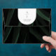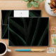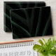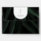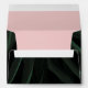 Dark palm leaf outside with blush pink inside. Back flap features white arch with monogram and return address.