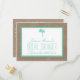 The design features a lovely rustic burlap effect background with cute mint green palm trees.