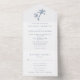 Tropical Palm Tree Beach Wedding Dusty Blue All In One Invitation